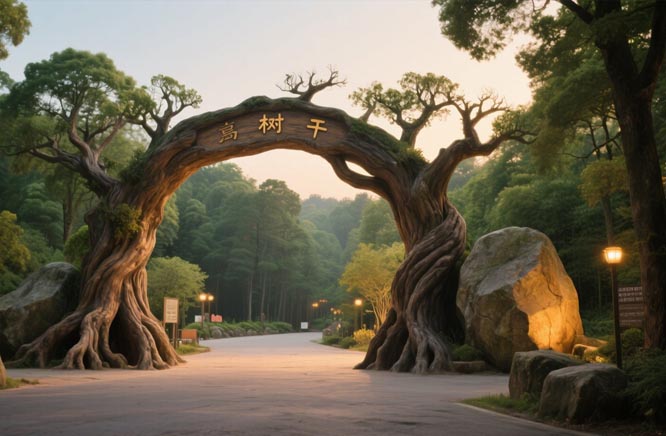 仿真樹大門制作設計圖與施工修改后的效果對比