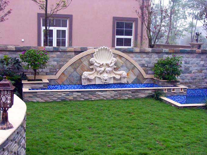 項目描述:別墅水墻-歐式雕塑別墅水墻,帶有兒童雕塑及獅子雕塑的別墅水墻-盡顯歐式水墻風格。