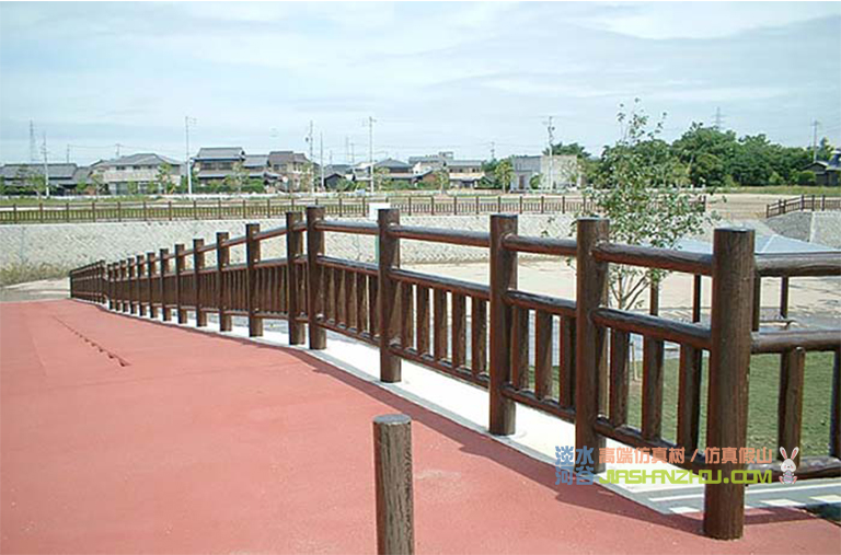 燒杉色水泥仿木欄桿、及水泥仿木涼亭