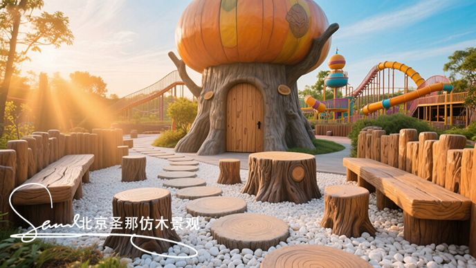 北京怡和山莊用仿木制作的別墅庭院景觀工程