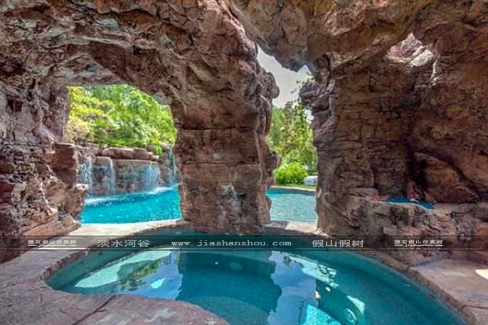 修改后的仿真假山施工圖的終效果圖如下,把瀑布、溶洞、步道融和到一起。