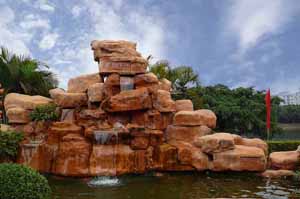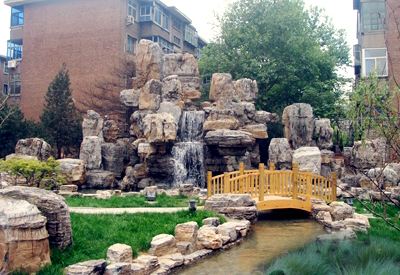 千層石的疊放方法也和石材本身形狀相似,以平穩為主,主要是考慮到安全,是近些年別墅公公共園林及私家庭院的首選,靈璧石假山、英德石假山雖然更漂亮,但因其穩定性差,容易對兒童產生傷害,所以近年來在公共場所幾乎沒有使用了。